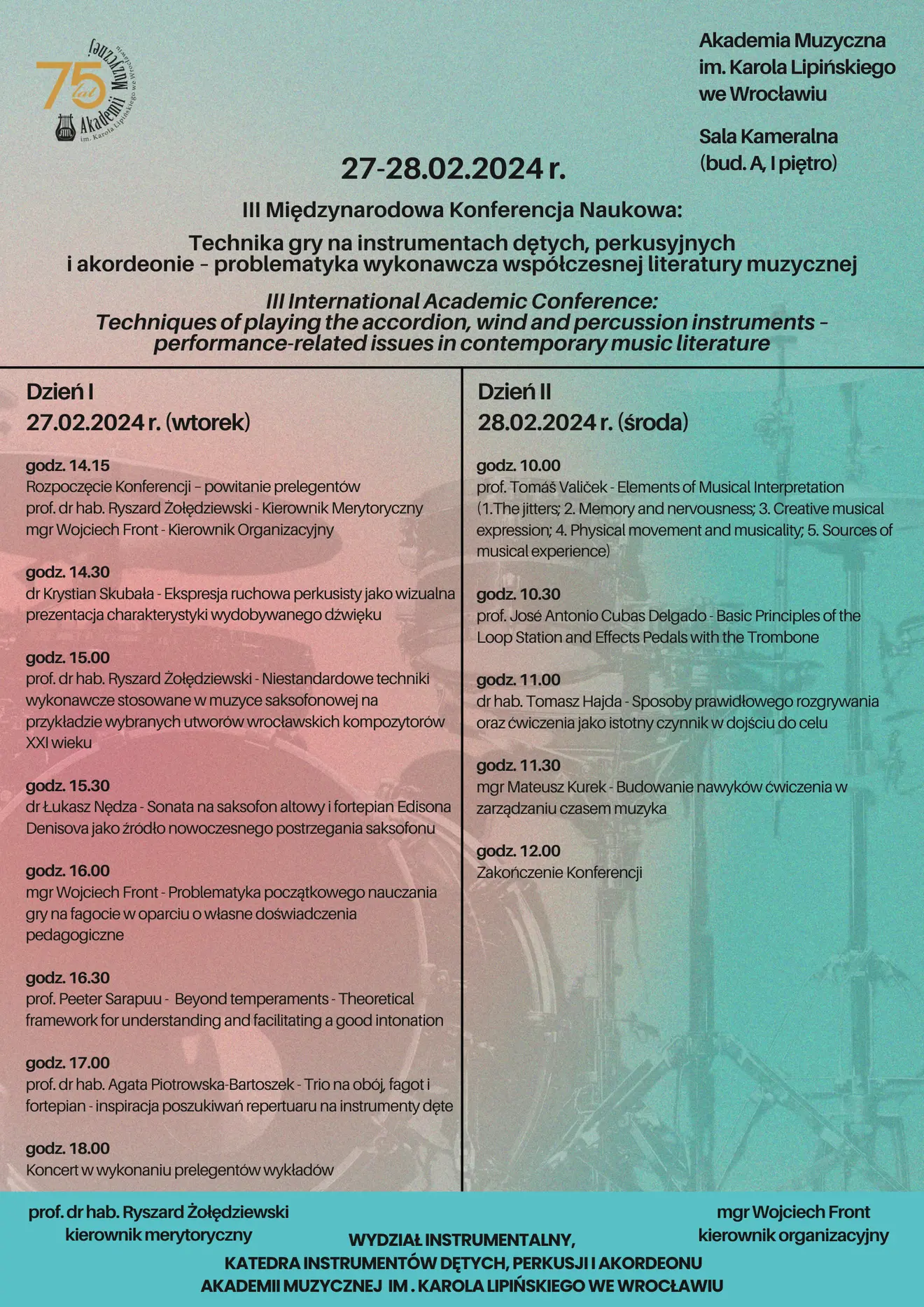 III Międzynarodowa Konferencja Naukowa: Technika gry na instrumentach dętych, perkusyjnych i akordeonie - problematyka wykonawcza współczesnej literatury muzycznej