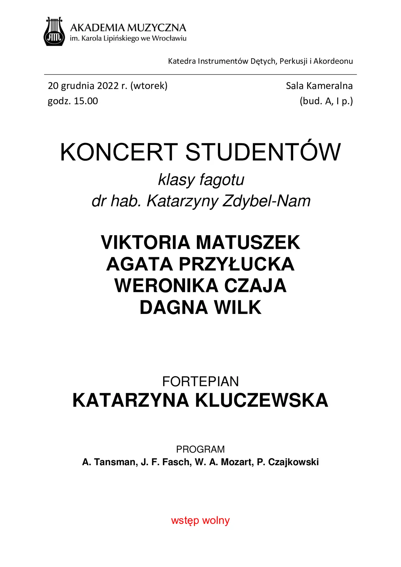 Koncert studentów klasy fagotu