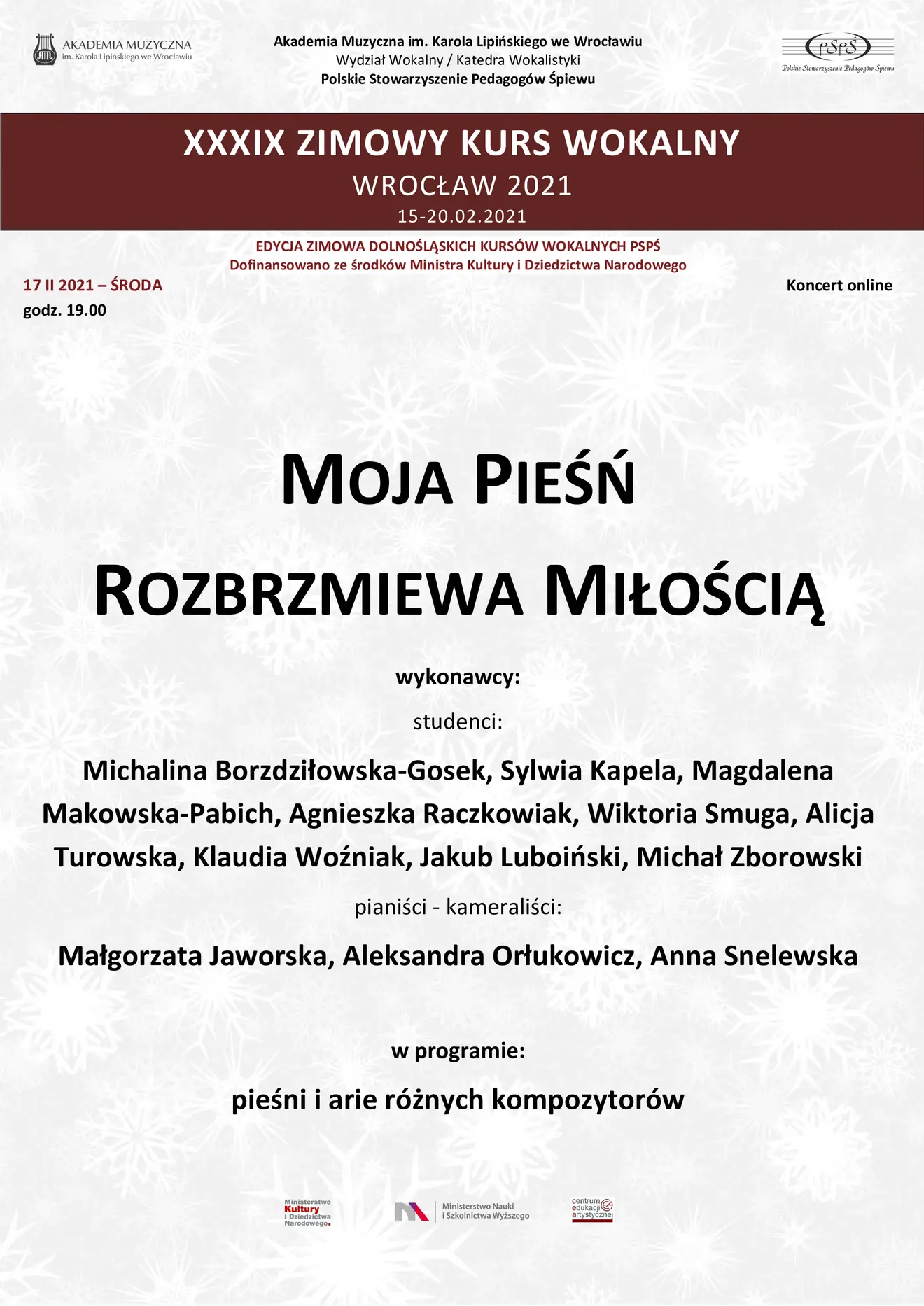 Moja pieśń rozbrzmiewa miłością - koncert w ramach XXXIX Zimowego Kursu Wokalnego