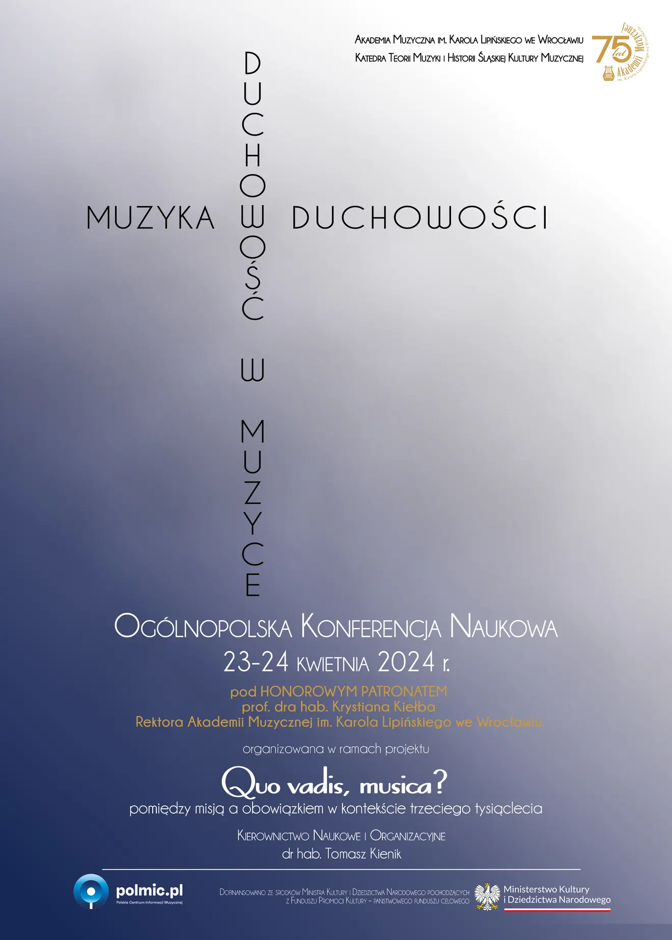 Konferencja w ramach realizacji projektu pt. "Quo vadis, musica? – pomiędzy misją a obowiązkiem w kontekście trzeciego tysiąclecia" dofinansowanego ze środków Ministra Kultury i Dziedzictwa Narodowego pochodzących z Funduszu Promocji Kultury – państwowego funduszu celowego.
