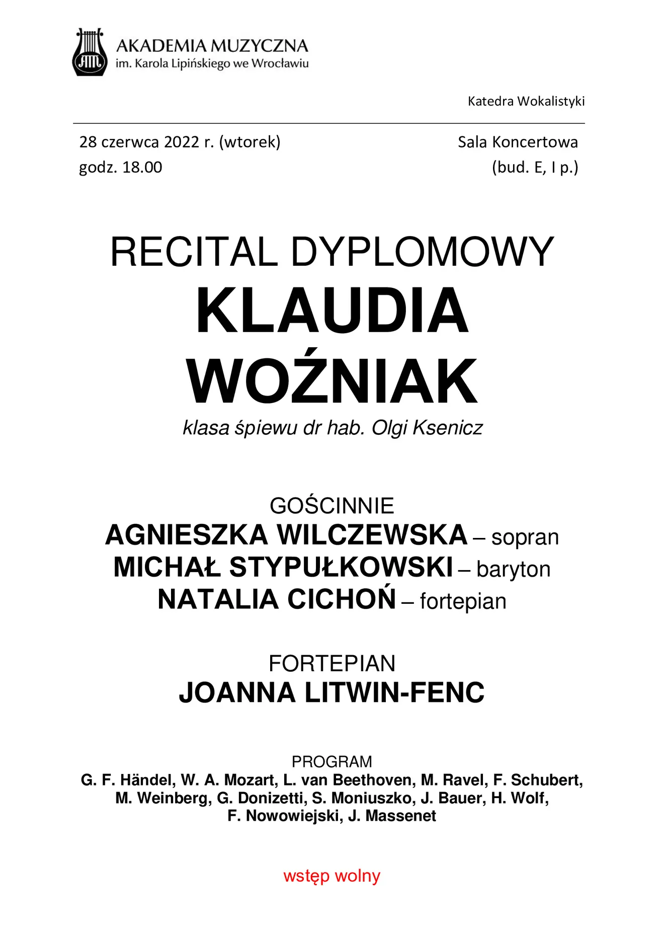 Godzina: 18:00 Miejsce wydarzenia: Sala Koncertowa AMKL