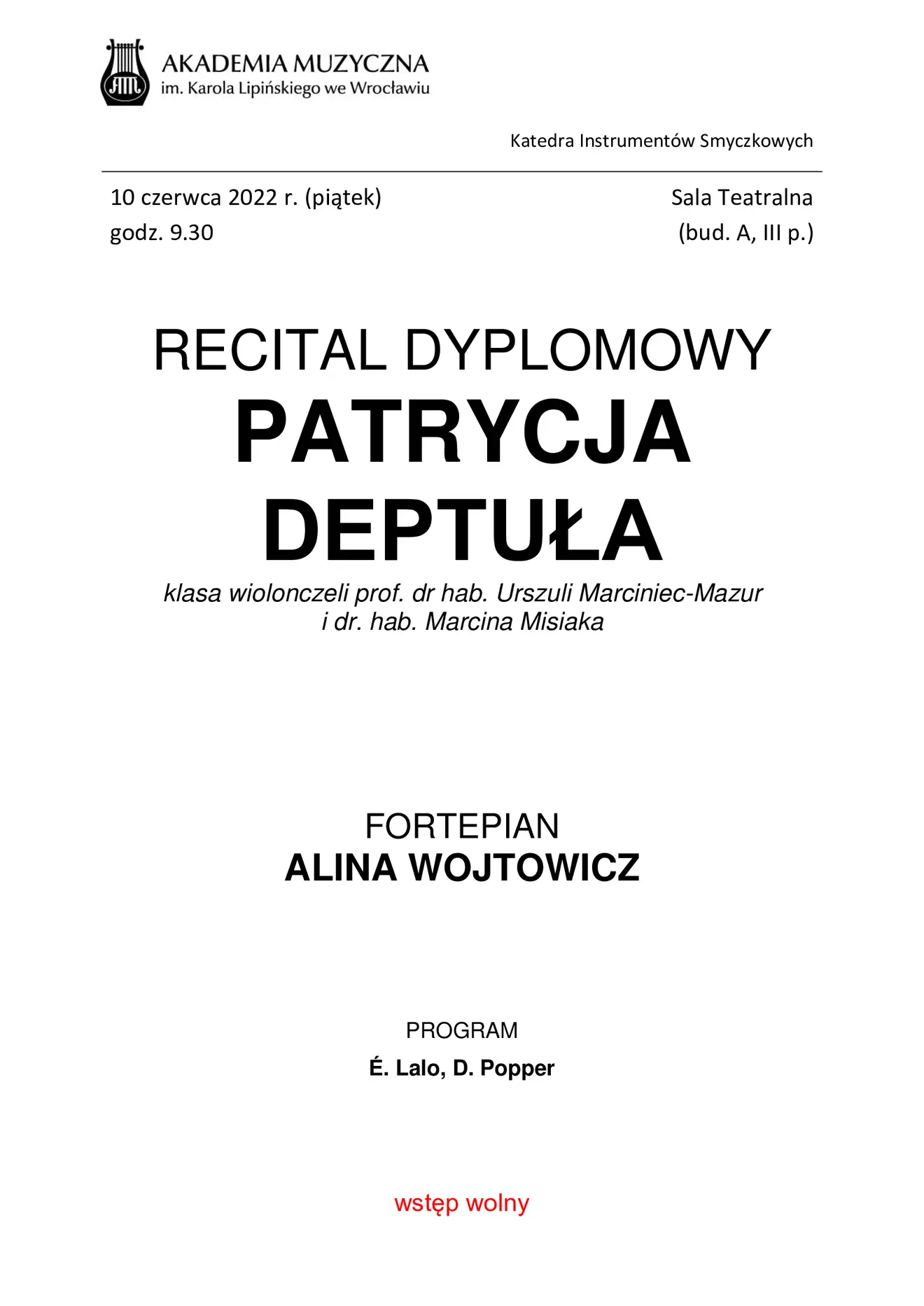 Recital dyplomowy Patrycji Deptuły