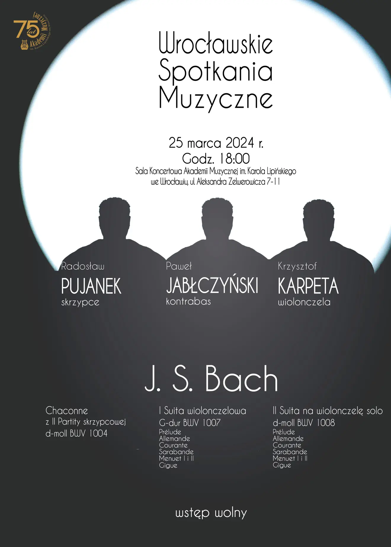Kolejny koncert z cyklu Wrocławskie Spotkania Muzyczne odbędzie się w dniu 25 marca o godzinie 18.00 w Sali Koncertowej AMKL (wejście od ul. Aleksandra Zelwerowicza 7-11).