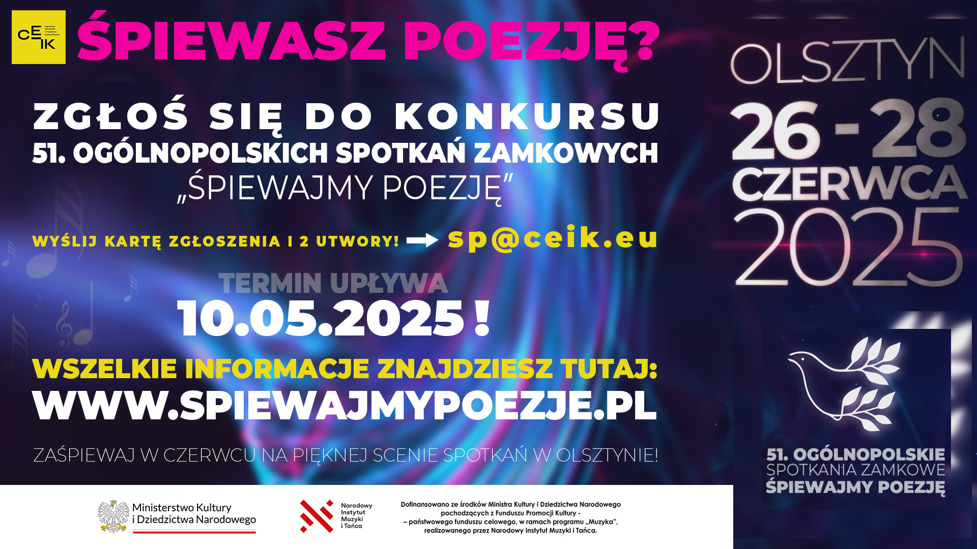 Konkurs Ogólnopolskich Spotkań Zamkowych "Śpiewajmy Poezję" w Olsztynie na Warmii!