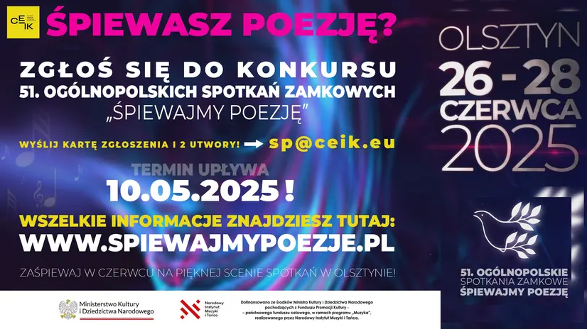 Śpiewasz poezję? Zgłoś się do konkursu Ogólnopolskich Spotkań Zamkowych "Śpiewajmy Poezję" w Olsztynie na Warmii!
