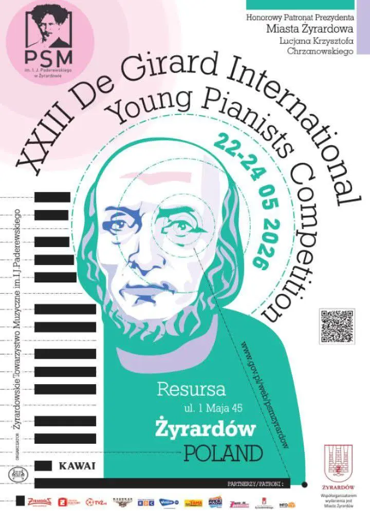 Żyrardowskie Towarzystwo Muzyczne im. I.J. Paderewskiego pod Honorowym Patronatem Państwowej Szkoły Muzycznej I i II stopnia im. I.J. Paderewskiego w Żyrardowie zaprasza do udziału w kolejnej, XXIII edycji konkursu pianistycznego „De Girard International Young Pianists Competition”.