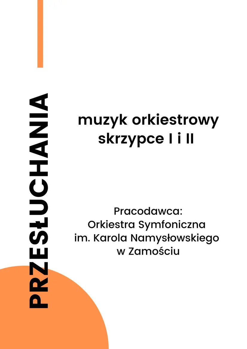 Orkiestra Symfoniczna im. Karola Namysłowskiego w Zamościu ogłosiła konkurs otwarty na stanowisko:muzyk orkiestrowy I i II skrzypce tutti.