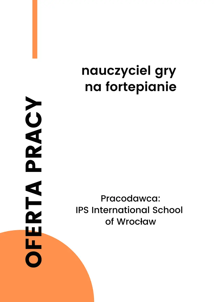 Anglojęzyczna niepubliczna szkoła muzyczna poszukuje nauczyciela gry na fortepianie.