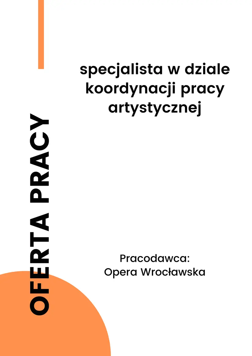 Dyrekcja Opery Wrocławskiej zatrudni osobę na stanowisku: Specjalista w dziale koordynacji pracy artystycznej