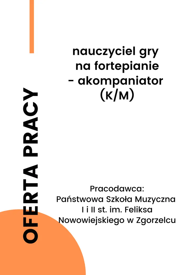 Praca w Państwowej Szkole Muzycznej I i II st. im. Feliksa Nowowiejskiego w Zgorzelcu: nauczyciel gry na fortepianie-akompaniator (K/M)