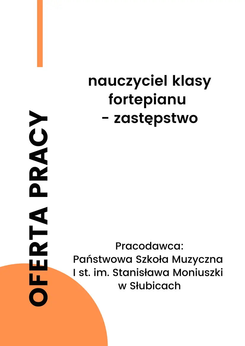Praca w Państwowej Szkole Muzycznej I st. im. Stanisława Moniuszki w Słubicach: nauczyciel klasy fortepianu - zastępstwo