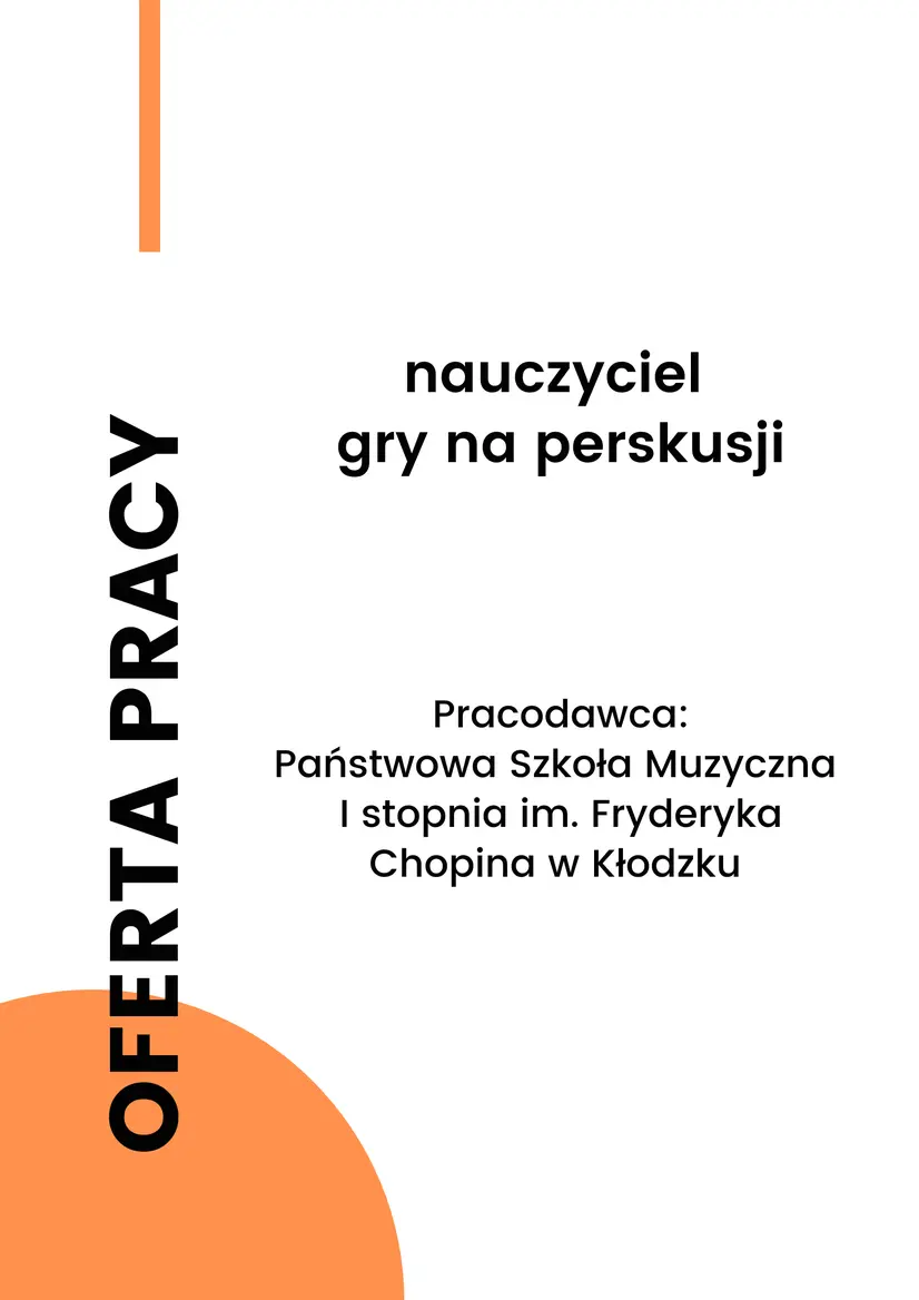 Państwowa Szkoła Muzyczna I stopnia im. Fryderyka Chopina w Kłodzku zatrudni pracownika na stanowisko: nauczyciel gry na perkusji
