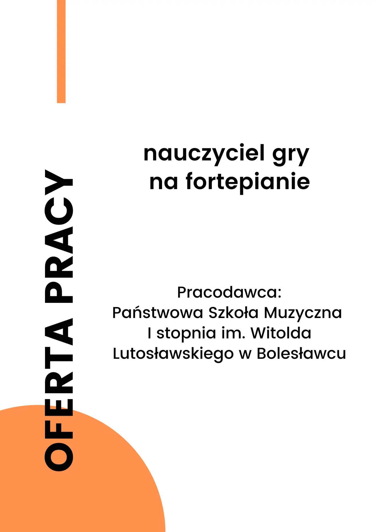 Praca w Państwowej Szkole Muzycznej I stopnia im. Witolda Lutosławskiego w Bolesławcu: nauczyciel gry na fortepianie