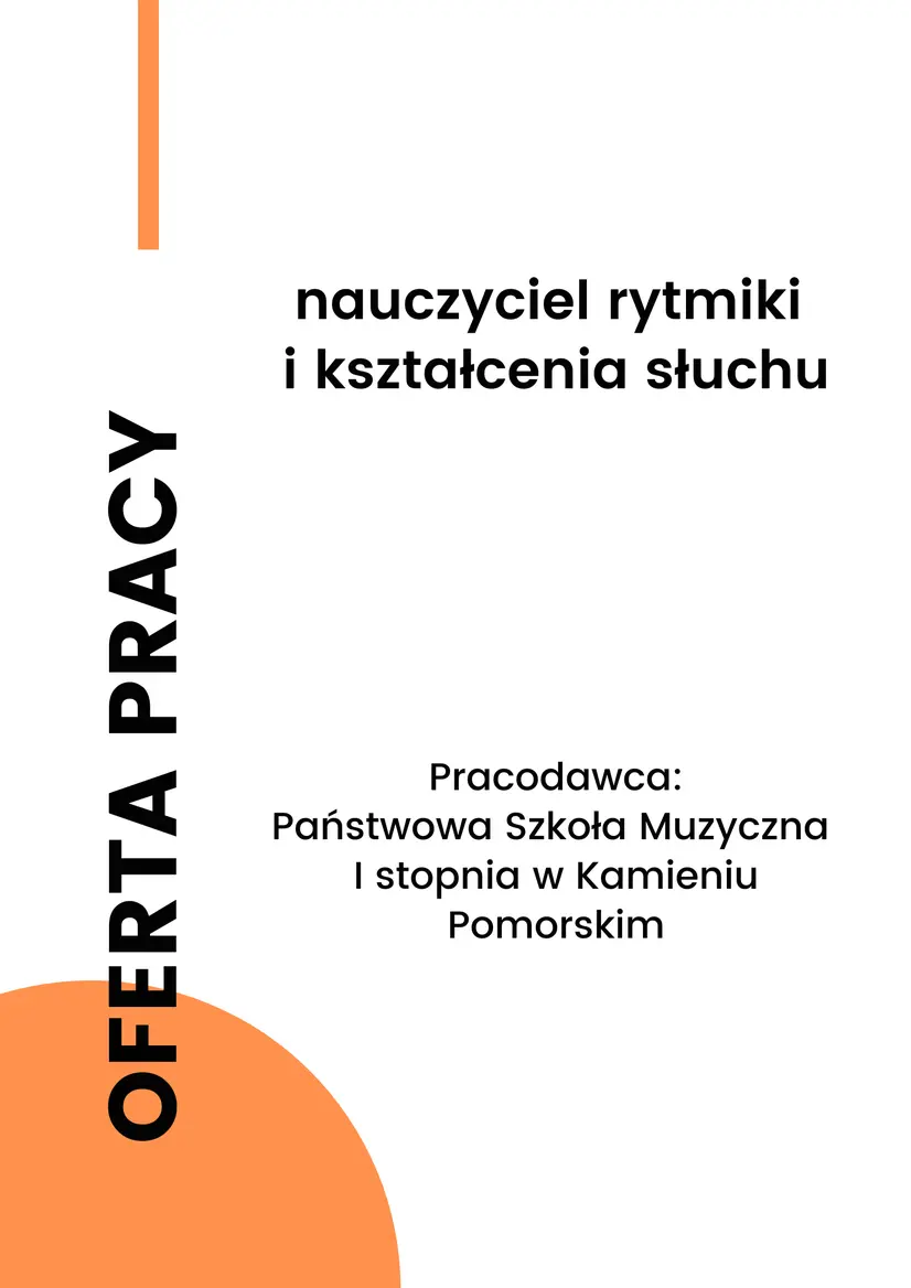 Praca w Państwowej Szkole Muzycznej I stopnia w Kamieniu Pomorskim: nauczyciel rytmiki i kształcenia słuchu