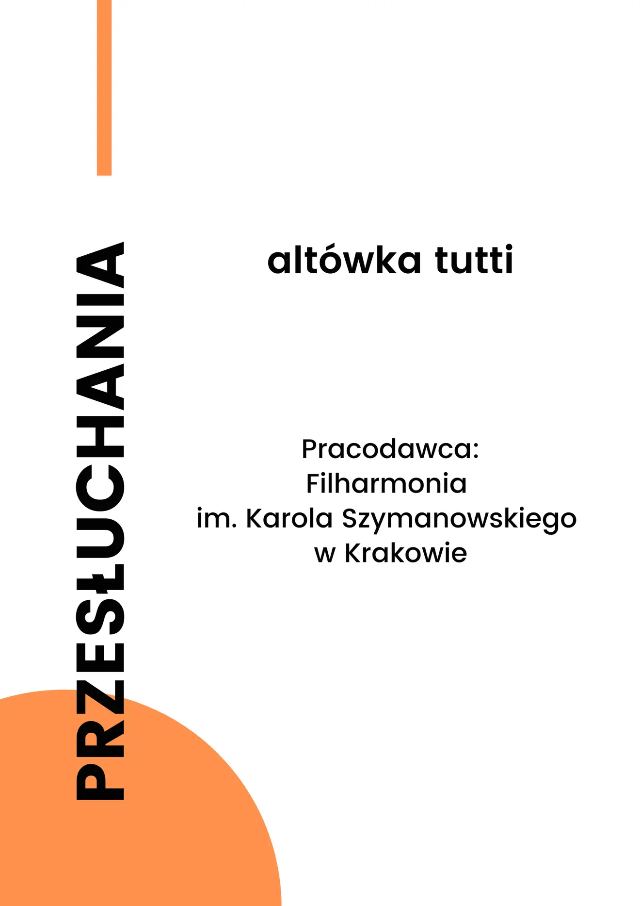 Więcej informacji: https://filharmoniakrakow.pl/public/rekrutacja/ogloszenie-i--przesluchaniach-do-orkiestry---altowka-tutti
