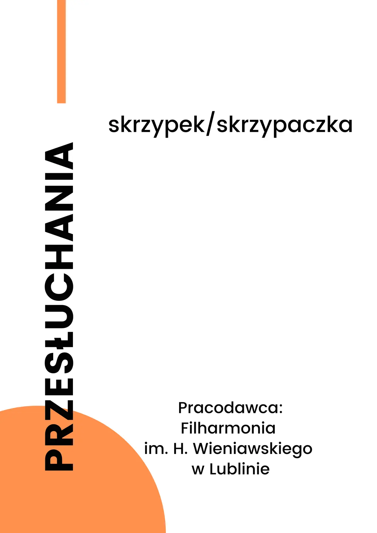 Przesłuchania do Filharmonii im. Henryka Wieniawskiego w Lublinie: skrzypek/skrzypaczka
