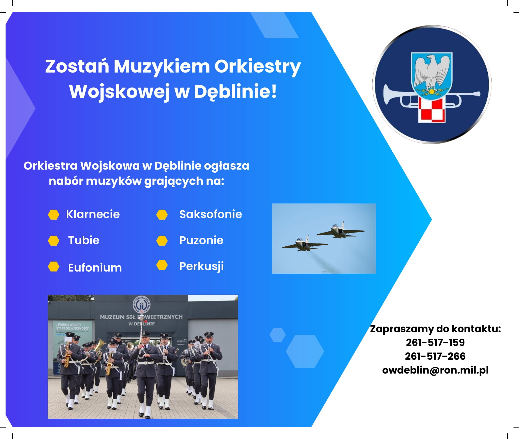 Orkiestra Wojskowa w Dęblinie ogłasza nabór muzyków grających na następujących instrumentach: