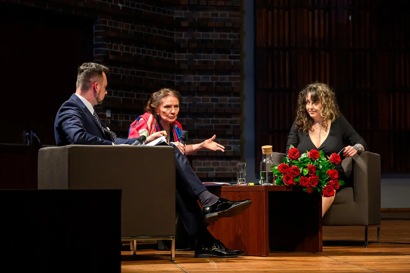Spotkanie z artystką poprowadzili Nadia Szagdaj i Jakub Walczak.