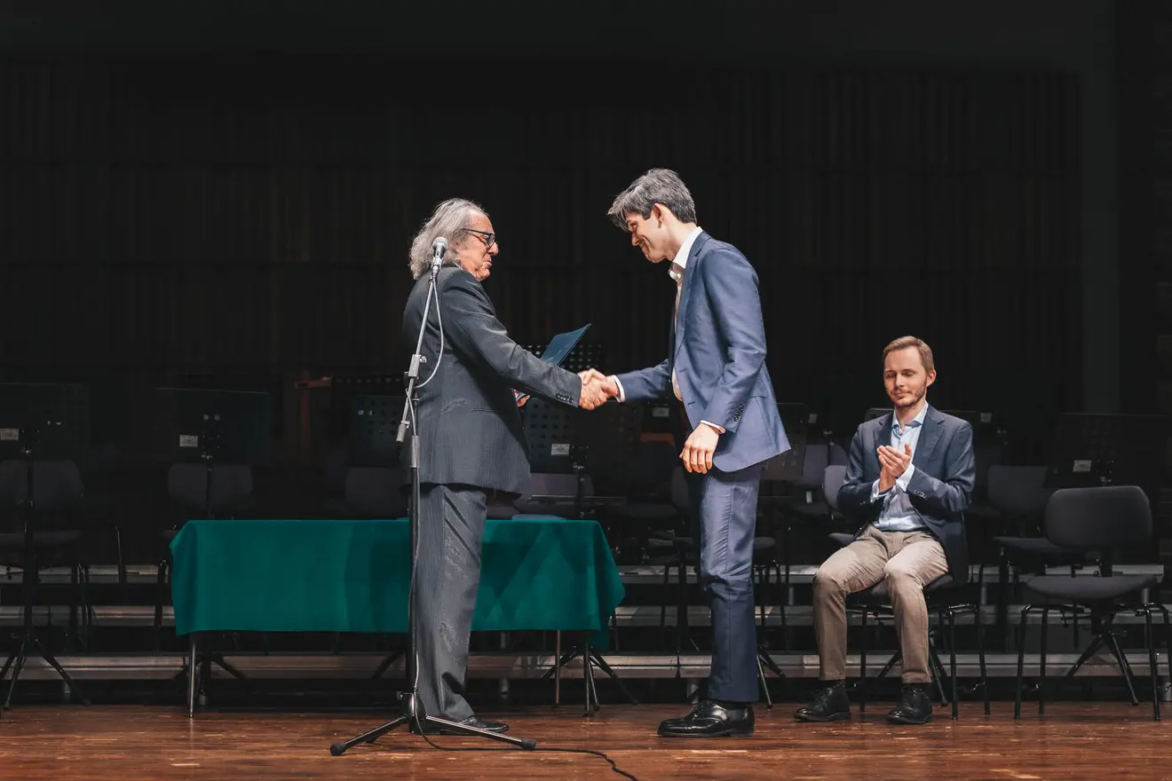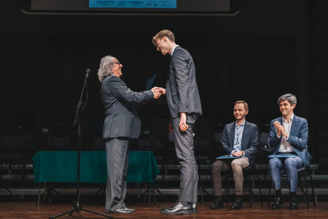 - Miejsce I - Julian Gilewski (klasa dyrygentury prof. dr hab. Moniki Wolińskiej, Uniwersytet Muzyczny Fryderyka Chopina w Warszawie)