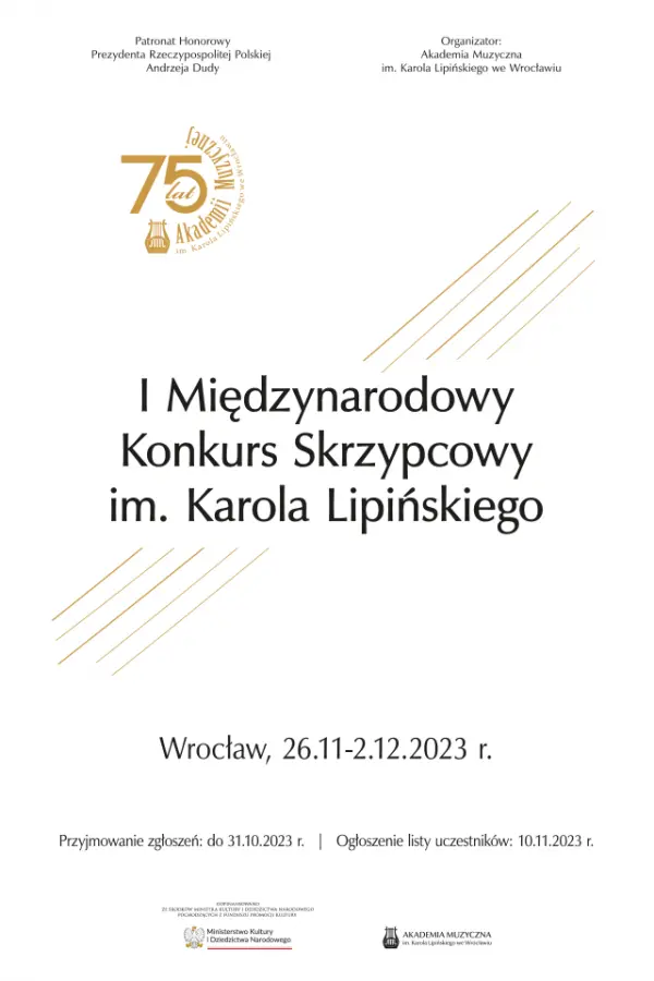 Konkurs jest organizowany w ramach obchodów Jubileuszu 75-lecia Akademii Muzycznej im. Karola Lipińskiego we Wrocławiu, które zostały objęte Patronatem Honorowym Prezydenta Rzeczypospolitej Polskiej Andrzeja Dudy