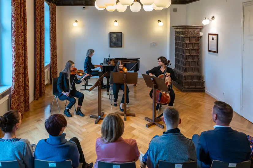 W budynku F znajdują się biura administracji uczelni (parter), sale Wydziału Wokalnego (I piętro), sale dydaktyczne, Sala im. prof. Włodzimierza Obidowicza; swoją siedzibę ma tu także Studium Języków Obcych. Na III piętrze budynku znajdują się pokoje gościnne.